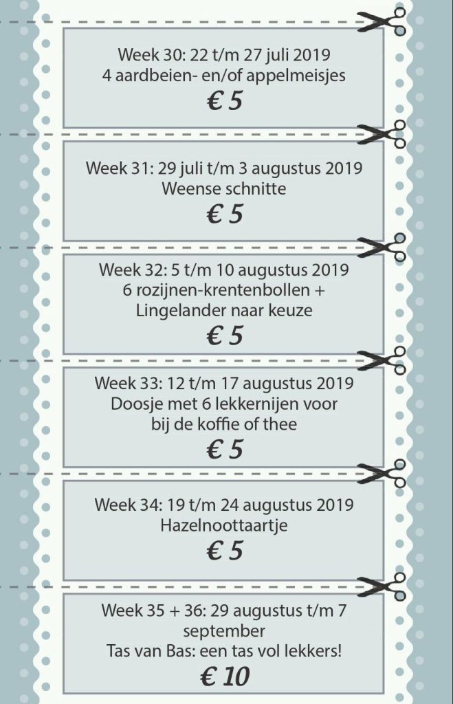 Op de achterkant van de kortingscoupon kan u uw emailadres opgeven en elk weekend (tot het einde van het jaar) verloot Bakker Bas een heerlijke taart!
